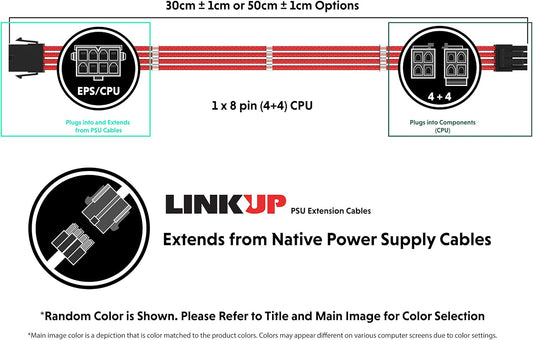 - 30Cm 8P(4+4) CPU PSU Cable Extension 18AWG Oxygen Free Copper (OFC) Teflon Jacket Custom Mod PC W/Combs | Single Pack | 300Mm - Green